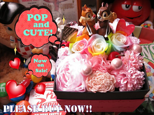 チップ&デール 花 ディズニー フラワーギフト 箱を開けると思わず、にっこりスマイル〜♪