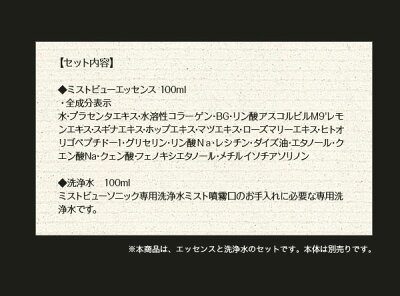 ミストビューソニック専用 エッセンス&洗浄水 セット ミストビュー エッセンス 100ml & 洗浄水 100ml セット。